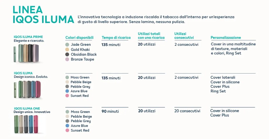 Personalizzazione: disponibile in 4 colori, è possibile personalizzare IQOS ILUMA PRIME scegliendo tra la gamma di accessori più ampia di sempre, particolari ricercati ed eleganti che ti permettono di rendere il dispositivo davvero tuo fino all’ultimo dettaglio. Potrai scegliere tra le Cover disponibili in una moltitudine di texture, materiali e colori e tra i colorati Ring Set dalle differenti finiture.